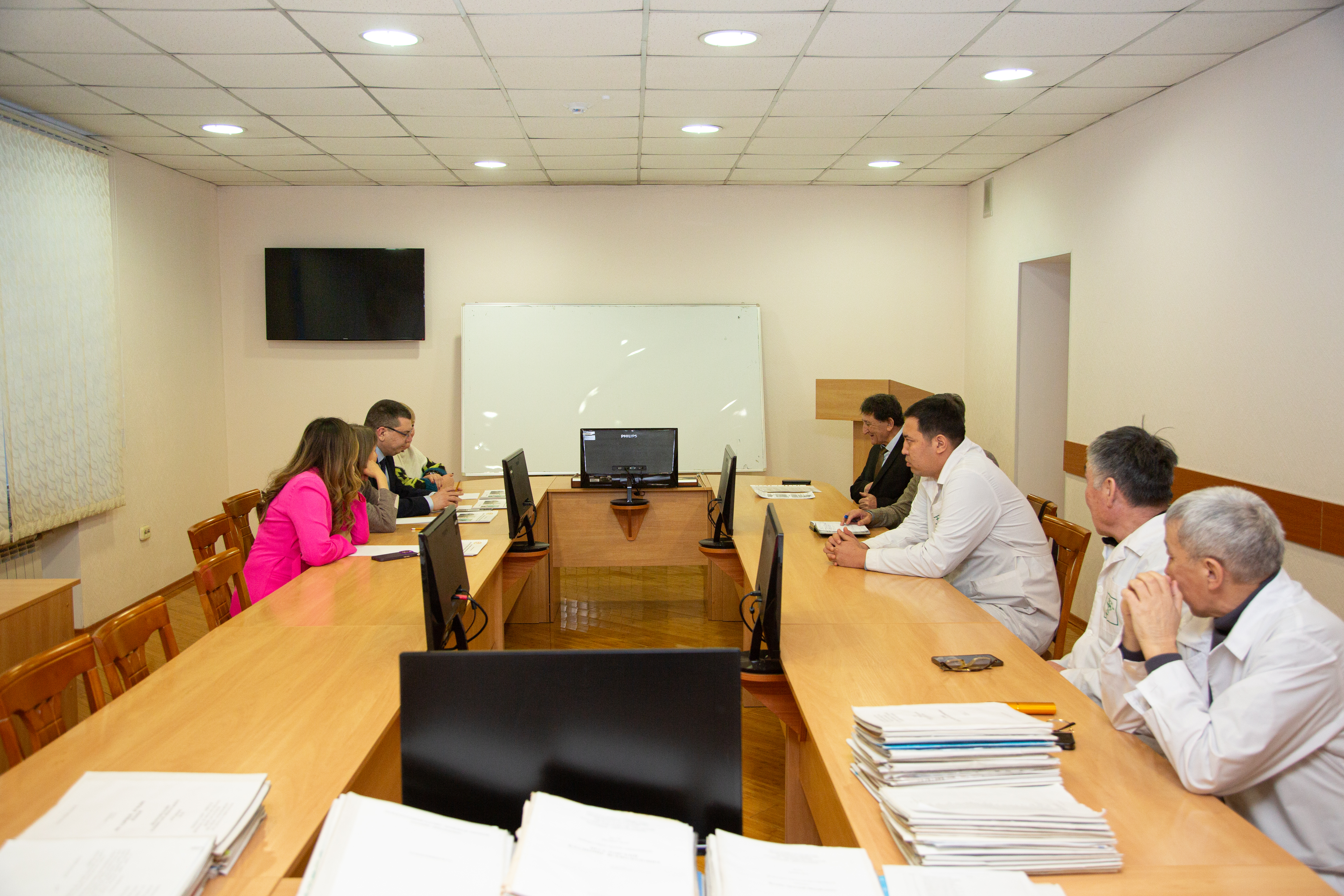 Following their visit to the laboratories and pilot pharmaceutical production facilities, a meeting was held between the Russian professors and leading scientists and young specialists of the Research and Production Center. The participants discussed a cooperation plan, including training opportunities for young researchers in the fields of pharmaceutical chemistry, pharmacognosy, and pharmaceutical technology.
